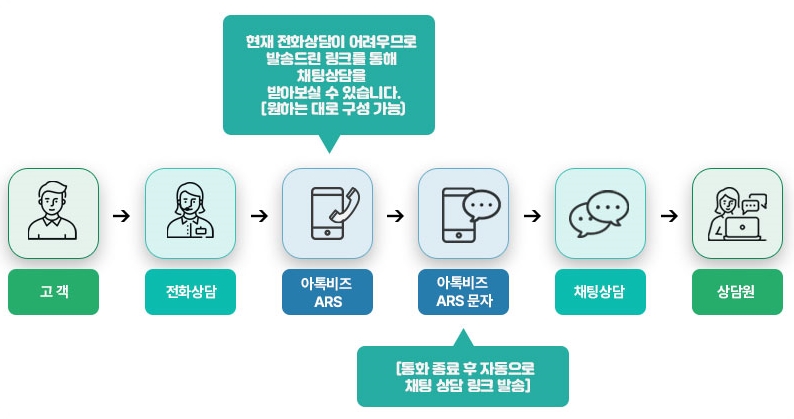 위와 같이 ARS와 ARS문자를 이용해 전화상담을 채팅상담으로 전환할 수 있습니다.