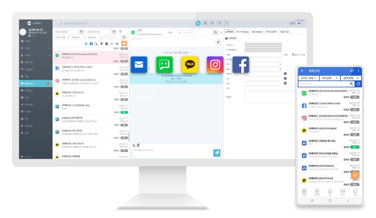 아톡비즈 통합 채팅상담으로 한 페이지에 모아서 응대하고 관리할 수 있습니다.