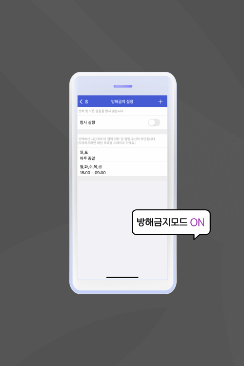 퇴근, 연차 시에는 '방해금지모드'를 통해 모든 전화와 알림을 꺼놓을 수 있으며,