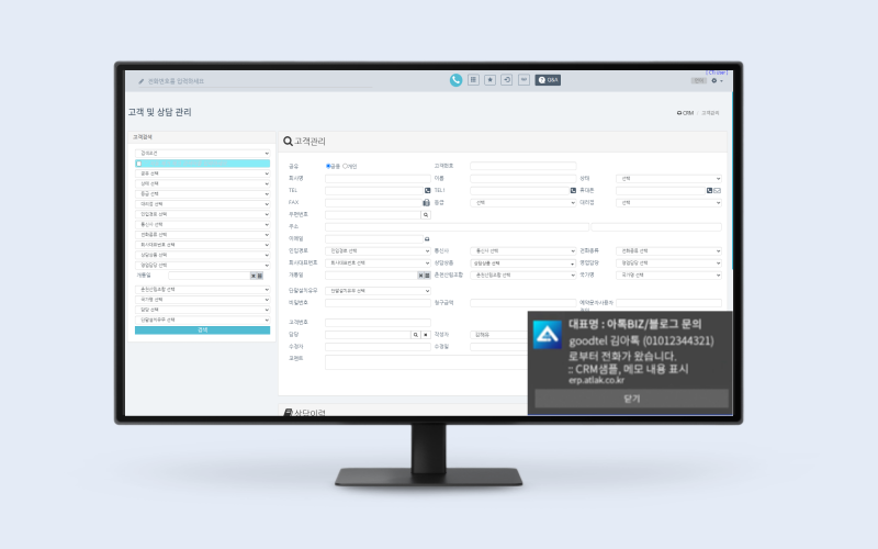 부가서비스를 활용하면 어떤 지점에 무슨 문의로 유입 된 전화인지 팝업 확인이 가능하며,