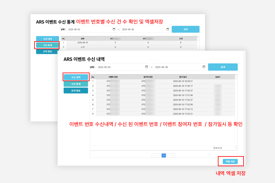 ✔ 진행 중인 ARS이벤트의 수신 통계를 직접 확인하고 싶은 기업
