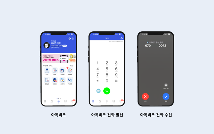 아톡비즈 오피스 서비스를 사용하시면 스마트폰으로 회사전화 받기, 걸기가 모두 가능합니다.