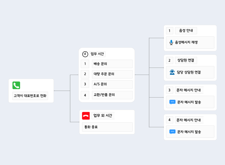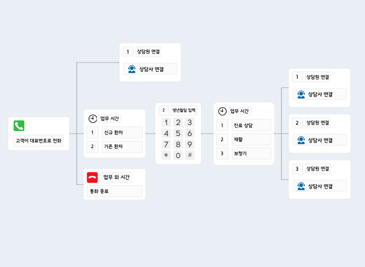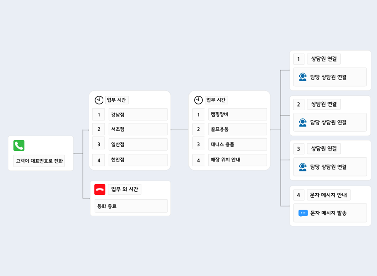 복잡한 여러단계의 ARS 시나리오 구성이 가능합니다.