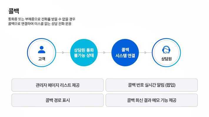 콜백의 위와 같이 통화 중이거나 부재 중일 경우 콜백 시스템에 연결이 되어 통화를 남긴 민원인의 리스트를 제공받아