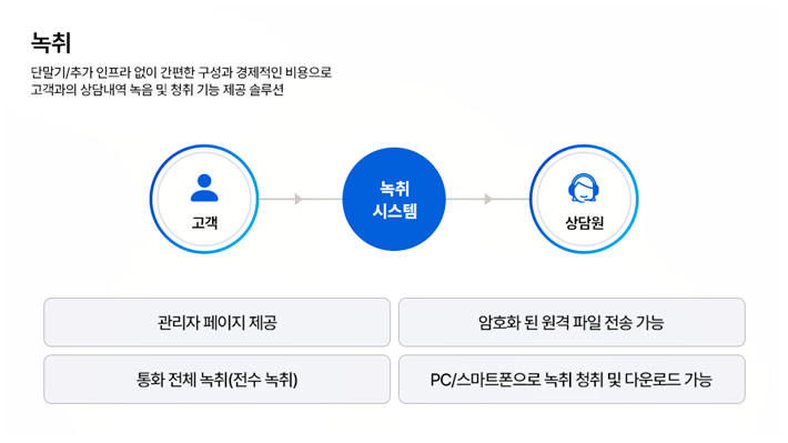관리자 페이지를 제공하여 녹취를 청취하고 다운로드할 수 있기 때문에 관리가 편리합니다.
