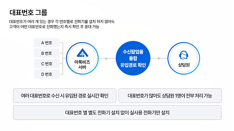 어떤 대표번호로 유입된 통화인지 경로를 확인 후 한 전화기로 응대가 가능한 대표번호 그룹