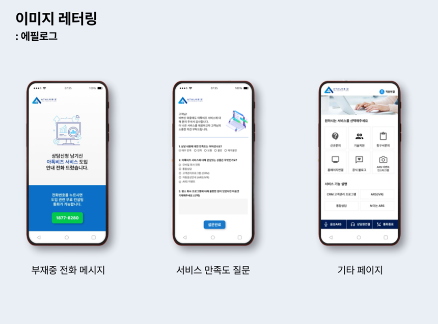 고객과의 통화가 종료된 뒤에는 에필로그 이미지를 팝업 시킬 수 있습니다. 고객과 통화 연결이 안됐을 때는 부재중 전화 이미지를 남겨 회신률을 높이거나,