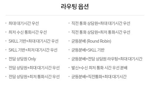 들어오는 전화를 부서나 담당자에게 자동으로 연결하고 통화량을 균등 분배 하거나 고객의 전화가 바로 이어지지 않더라도 대기 시간을 줄 수 있습니다.(ACD)