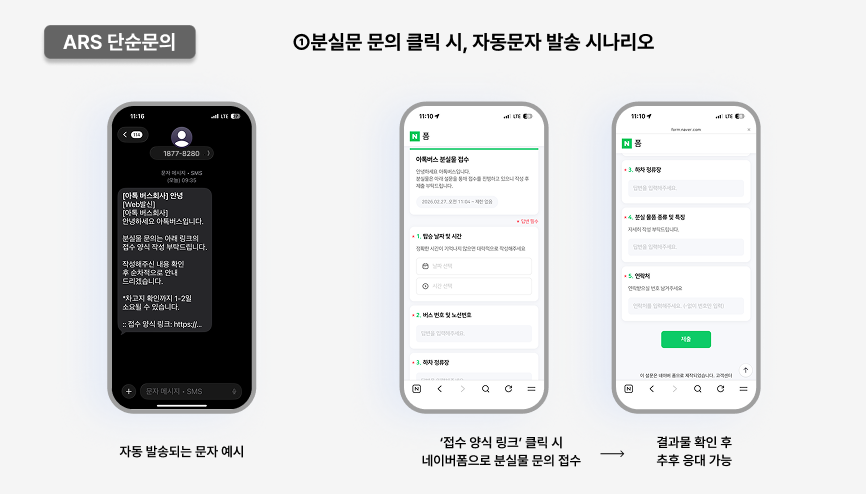 통화 종료 후 자동 문자 발송으로 분실물 접수 링크를 전달해 고객이 직접 정보를 입력하도록 전환했습니다.
